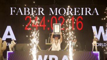in MUSICA, NOTIZIE Faber Moreira raggiunge il Guinness World Record del dj set più lungo al mondo con 200 ore… ma vuole arrivare a 240 ore Read More