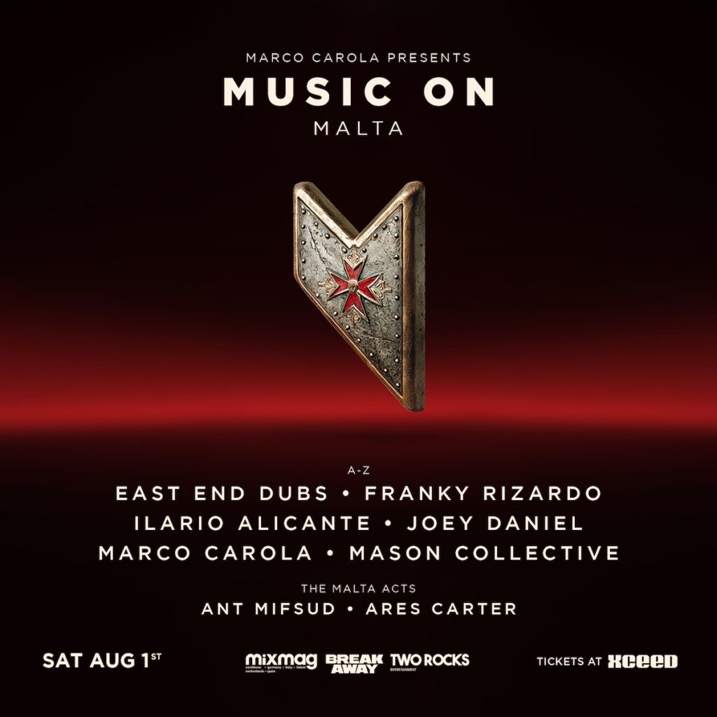 Nato nel 2012 da un’idea di Marco Carola, in brevissimo tempo Music On è diventato un must nel calendario degli eventi internazionali con protagonista la musica elettronica: più che un party o un festival, un autentico marchio globale partito da Ibiza – dove d’estate si svolge al Pacha ogni venerdì – e poi approdato in tutto il mondo: da Amsterdam a Dubai, da Miami a Milano e a Punta del Este. Sabato 1° agosto 2026 sarà la prima volta a Malta.
