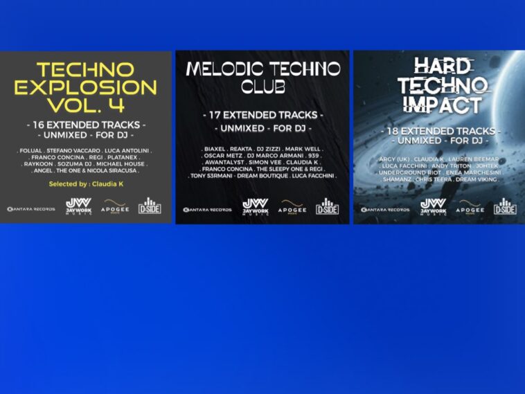 Jaywork Music propone 3 scatenate compilation elettroniche: Melodic Techno Club, Hard Techno Impact, Techno Explosion Vol. 4.