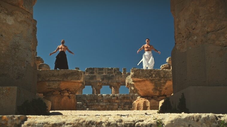 Il video di “Figli delle stelle” è stato girato a Selinunte, magico sito Siciliano che ha ospitato i Giantheo e la loro musica. Nel videoclip i due artisti si muovono quasi senza tempo tra le rovine con la presenza di un cavallo quasi a riecheggiare tempi ormai entrati nella mitologia.