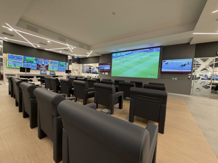 La nuova struttura si estende su 1.800 mq, di cui 1.200 aperti al pubblico. Cuore pulsante del progetto è la piazza “Match-Bar IPPODROMO”: 250 mq con 50 poltrone lounge, un maxi ledwall da 225 pollici, 4 schermi da 86″, 2 da 75″ e 8 da 60″ per seguire in diretta tutti i principali eventi sportivi e ippici, con ingresso libero riservato ai maggiorenni.