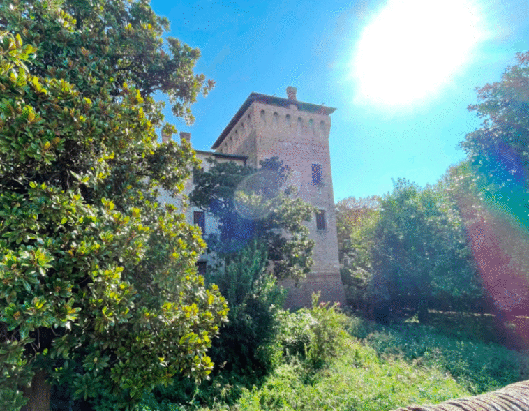 La superficie coperta supera i 1.500 mq, distribuiti su più livelli, mentre la corte privata e i giardini storici aggiungono altri 1.500 mq di scenografia all’aperto. Restano muri in pietra, altezze importanti, finestre strombate e le torri che disegnano il profilo del borgo. Gli ambienti interni, da ristrutturare, offrono volumi rari per la zona e grande libertà progettuale: dalla residenza privata di rappresentanza a un boutique hotel con spa e ristorante, da una location per eventi a un centro culturale con spazi espositivi e di ricerca.