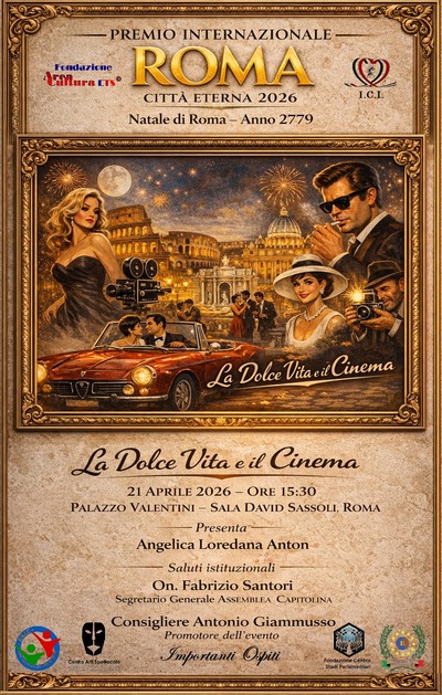 In occasione del 2779° anniversario della fondazione della Capitale, il 21 aprile 2026 alle ore 15:30, nella cornice istituzionale di Palazzo Valentini, si svolgerà la cerimonia ufficiale del Premio Internazionale “Roma Città Eterna 2026”.