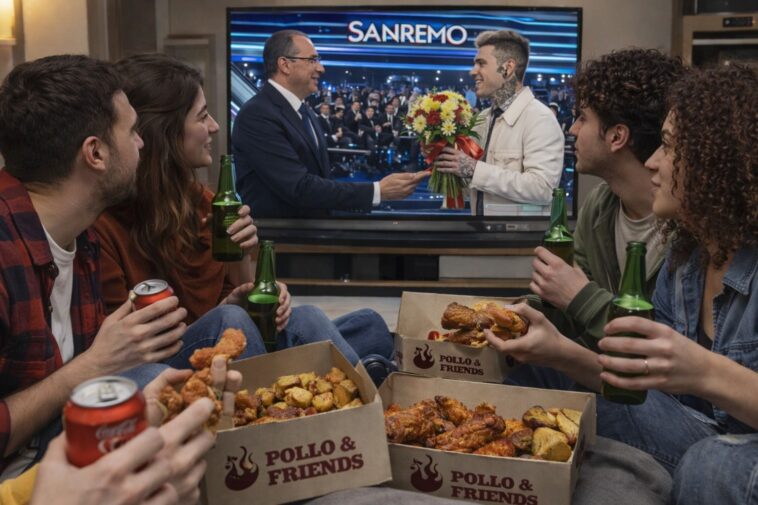 Meglio il ritornello di Tommaso Paradiso o l’abito colorato di Arisa? Boh, intanto passami un’aletta di pollo. E parte la caciara. C’è chi si finge critico musicale echi invece preferisce buttarla sull’ultima polemica in hype, sorseggiando una Moretti. Perchè da qualche anno il Festival di Sanremo non è più soltanto un programma televisivo, ma un vero rito collettivo capace di attraversare generazioni e aggregare come nemmeno una partita di calcio. Se in passato era percepito più come appuntamento da salotto per un pubblico prevalentemente adulto, oggi – complice l’apertura ai linguaggi della Gen Z, l’arrivo sul palco di artisti vicini al mondo urban (da Lazza a Geolier) e il successo social del Fantasanremo – è tornato a essere terreno di confronto quotidiano tra giovani, famiglie e gruppi di amici.